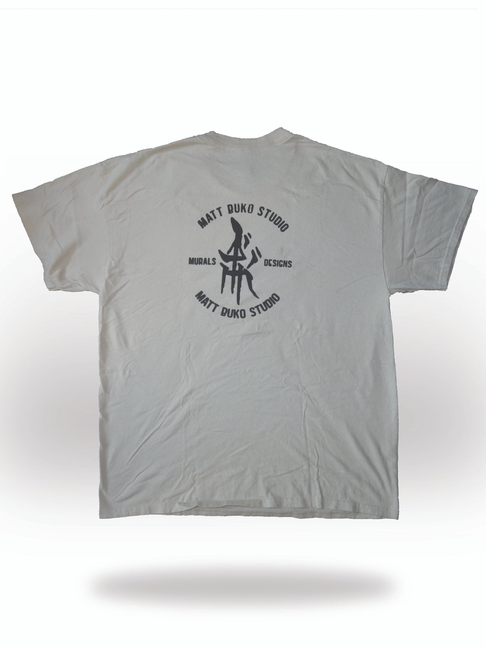 Represent the studio. Designed by muralist and visual artist Matt Buko, this minimalist logo tee is a wearable stamp of creative identity. Available in natural tan color, each shirt features the bold “Matt Buko Studio” logo printed across the back in a clean, graphic style.